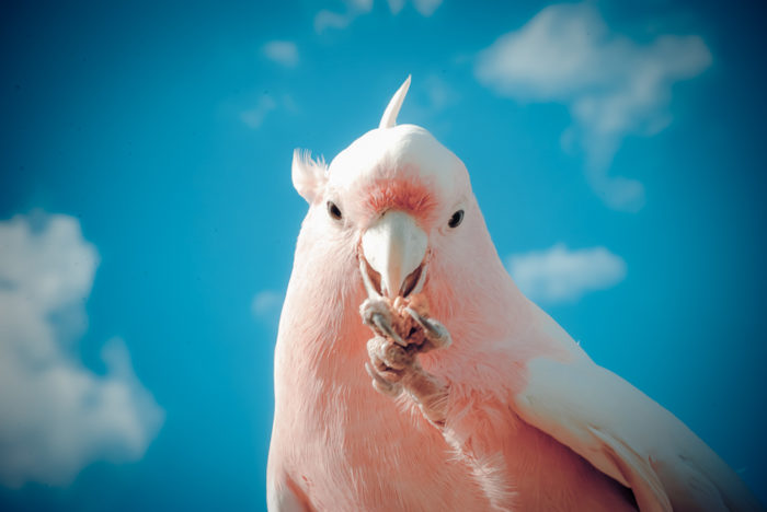 Yesterday we visited the parrot shelter again. Wistful Oak bought some food for the birds and they accepted it graciously. This little one was pleased with what she got.