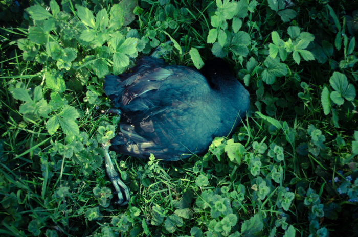 I noticed her as soon as we crossed the road. A black spot in the middle of the asphalt. I turned my bike around and went up the street, shouting to filósofo to wait. It turned out to be a hit-and-run… a mature coot. She must have been crossing the street to get to or from the ditch near here. I get a bag to wrap her in, but she still falls apart in my hands. I carry her to the trees and lay her down under the willow. Close to the water.