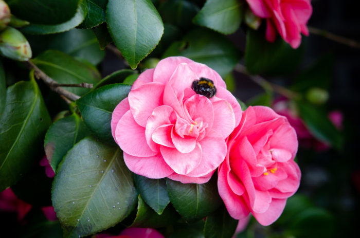 The first signs of spring are all around us. There are snow drops, crocusses and daffodils everywhere, the trees are budding and the camelia’s are in full bloom. On my morning walk I saw the first bumblebee of the season. His short life already over, I carried him in the palm of my hand to the camelia. A soft place for him to rest.