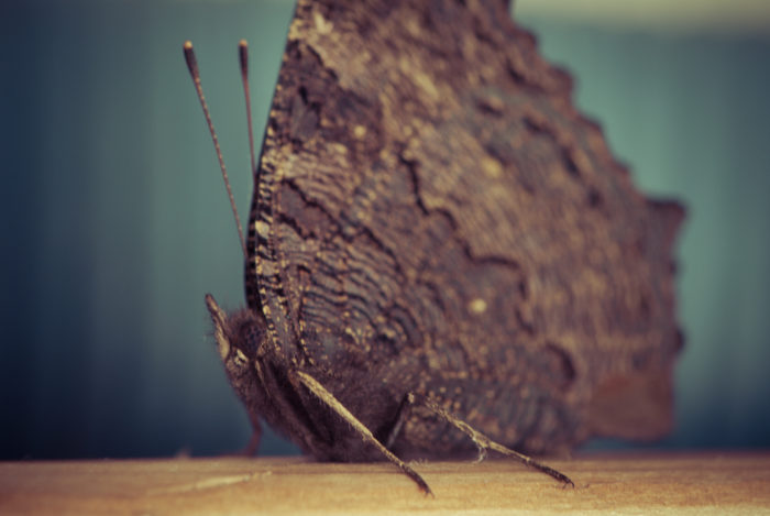 I was a bit moving things in the garage, and found this butterfly holding on a wooden shelf. I took her outside to take a picture. And put her back again in the dark. The next morning I wondered if I could find the butterfly again. Perhaps she was sitting in the windowsill. But there I found only a brown moth, and she was dead.