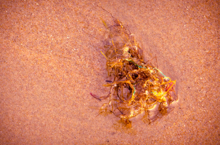I am always enthralled when I find a tangled mess at the beach: wires in all colours, feathers, pieces of wood, metal, seashells, oysters, random objects lost at sea – all jostled together and intricately connected by complex knots. “Murphy’s Law of String” a.k.a. spontaneous knotting: it’s one of the mysteries of the universe that I just can’t get over!